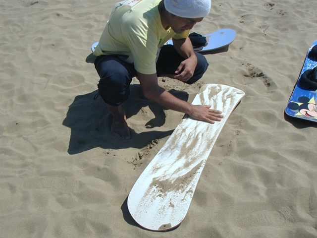参加者のほとんどはスノーボードの経験者でしたが、雪と砂の違い、想像以上の急勾配に転んだり、スピードが出過ぎたりしてなかなかポーズが決まりません。
