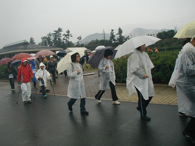 雨の中を完歩した参加者の心と体をほっこりさせたのが、吉岡温泉の温泉を使用した足湯コーナーでした。笑顔の花が咲き、雨でも歩く事の楽しさを気づかせてくれた楽しいウォークでした。