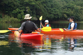 始めに柔軟体操でからだをほぐした後、基本となるパドルの漕ぎ方・カヌーの座り方転覆した時の対処方法などを学び、ライフジャケットを装着しツアーの出発です。