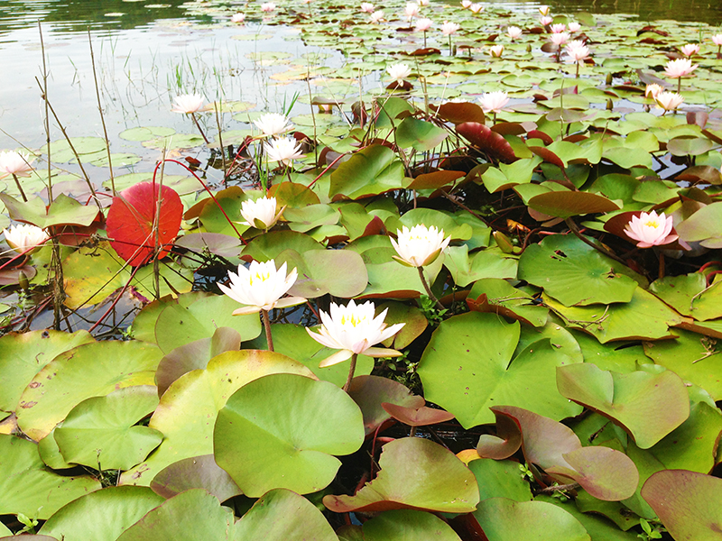 6月のツアーでは睡蓮が絨毯のように咲いていて、幻想的なとても美しい多鯰ヶ池を見ることができました。参加者の多くは、多鯰ヶ池に来るのが初めてということで、鳥取砂丘にこんな素晴らしい風景が広がっているのかと、感動していました。今年は水が少なく、普段は湖底にある島を見ることもできました。そのほか、ブラックバス、ブルーギル、鯉などの池の中に住む生き物も手が届くらい近くで見えました。